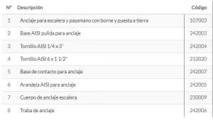 Anclaje para escalera y pasamano con borne y puesta a tierra